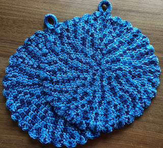 Und heute, wow, schaut her was ich am 3. Advent auswickeln durfte. Zwei wunderbare, selbst gehäkelte Topflappem, in einer Form, wie ich sie noch nie gesehen habe. Sie sind total schön und ich habe gerade so ein paar Topflappenfetzen (schon lange nicht mehr schön) aus meiner Küche in den Müll verbannt, so dass die neuen Topflappen bereits heute ihren Einstand geben können!